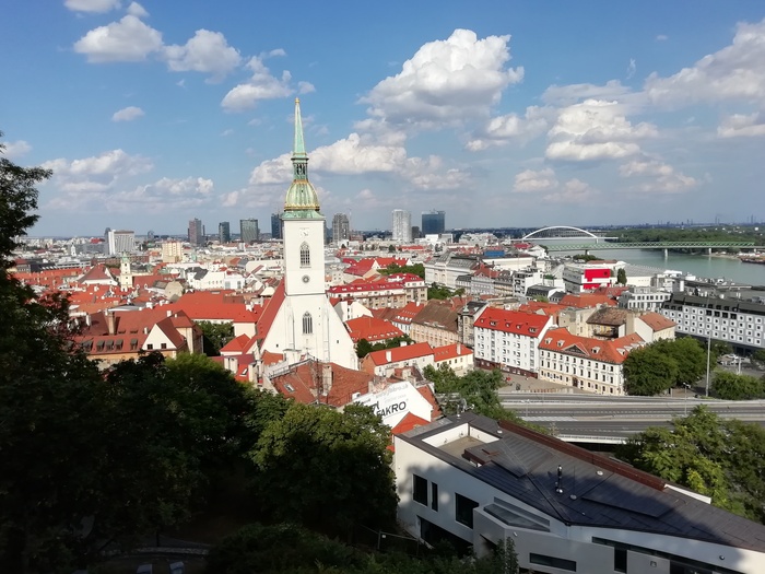 Прилетел в Братиславу, она оказалось совсем не такой как в фильме Евротур)) Красивый город с уютной архитектурой, но подальше от центра видна Восточная Европа с небольшой разрухой, но все чистенько.
