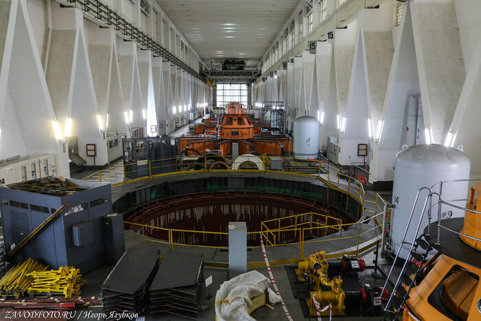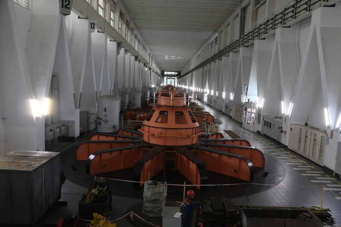 И вот сейчас идёт активная работа на гидроагрегате за номером 14. Важно отметить, что все работы проходят без остановки работы станцией, потребитель как получал энергию, так в рамках ремонта его никто не обделял. Гидротехнические сооружения также не остаются без внимания в рамках модернизации. На них регулярно проходят текущие ремонты и профилактические работы.