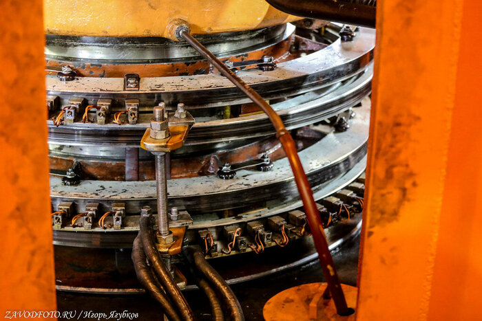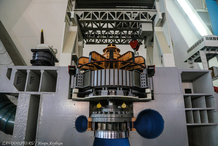 Представляете, частота вращения такого агрегата составляет 125 оборотов в минуту. То есть чуть более 2 оборотов в секунду совершает эта махина. Суммарной массой вращающихся частей около 750 тонн.