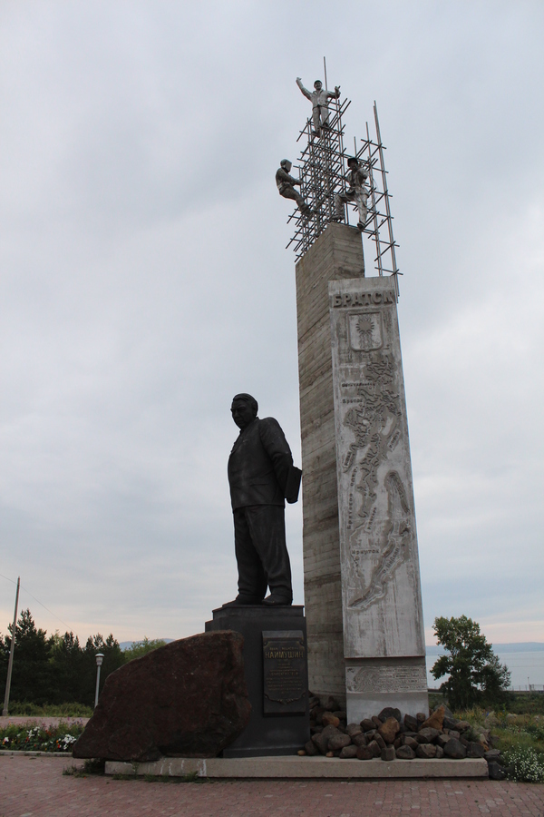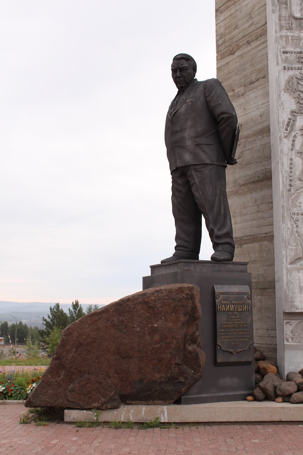 Вначале мы заехали со стороны "Братского моря" - водохранилища. Рядом расположен сквер имени Наймушина И.И. с одноименным памятником, воздвигнутом в его честь как начальника