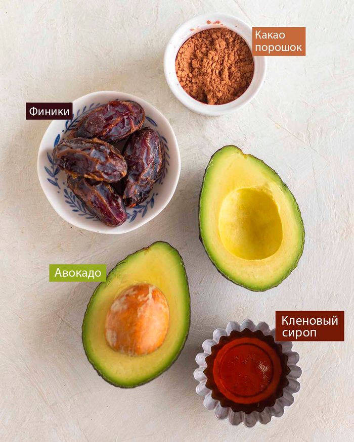 Добавьте все ингредиенты для глазури (авокадо, финики, какао-порошок, кленовый сироп) в кухонный комбайн. Измельчите до получения максимально однородной массы. При желании добавьте больше какао-порошка или подсластителя по вкусу.