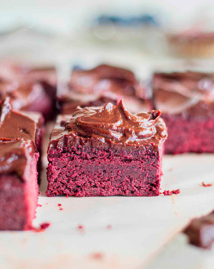 Веганские шоколадные пирожные брауни из свеклы с нежной шоколадной глазурью из авокадо.