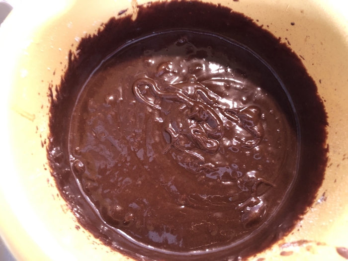 3. Далее добавить молоко и кокосовое масло. Можно слегка растопить его предварительно, чтобы его было легче перемешать, но и в таком состоянии, как на фото, оно тоже вполне хорошо размешалось до равномерной массы.