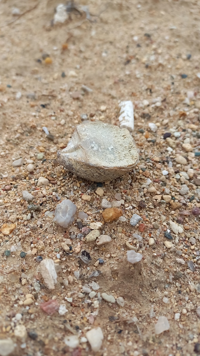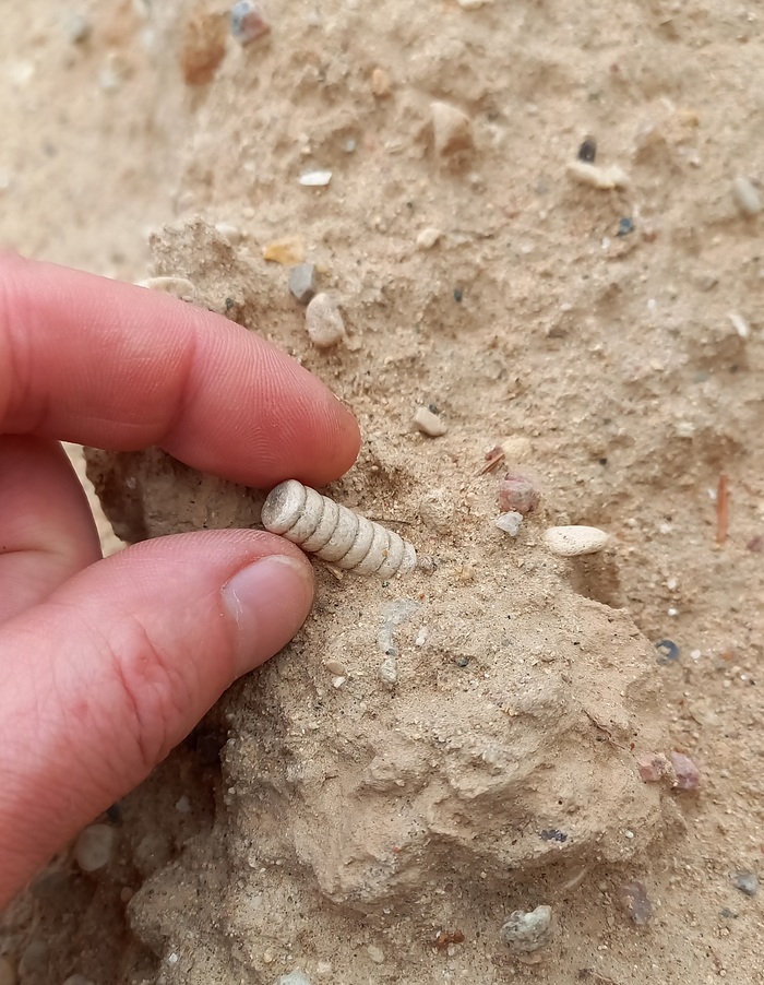 История о том, как я стал палеонтологом (нет). На самом деле, палеонтолог из меня так себе, но что есть то есть. На специалиста нужно учиться, но я выбрал путь любителя камней, а значит, наше поле боя - интернет. В 2023 году я съездил в Дагестан, и в один прекрасный момент приспичило мне и моим компаньонам привязать коня на обочине, и в процессе я вдруг заметил странный камень, рассыпавшийся на части. Внутри была окаменелость, какая именно, я до сих пор не понял, потому как удалось найти лишь фрагмент.