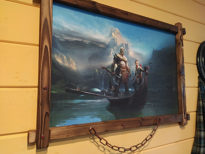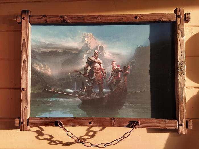 Прикинул раму в сборе. Вроде, неплохо. Особо вылизывать не старался, ибо тематика изображения на картине подразумевает некую толику брутальности.