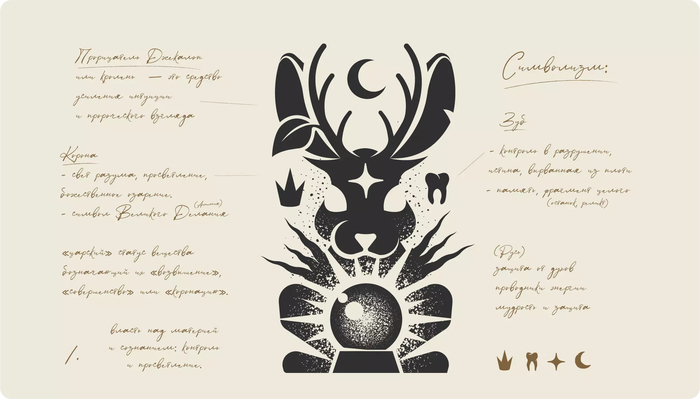 За типичными знаками и их значениями часто стоит целая история. Иногда это смысл клиента, иногда — образ, считываемый подсознательно. Будь то логотип, татуировка или личный тотем — изображение в таком стиле может нести набор символов, образующих высший смысл (в алхимии этот процесс называют Великим Деланием) или быть цельным, синтезирующим образом.
