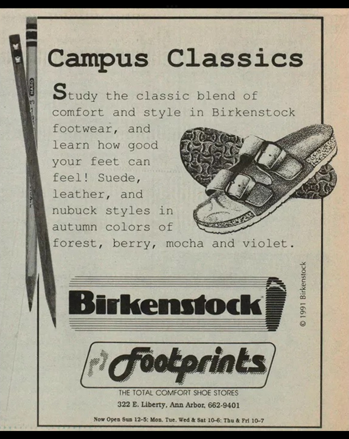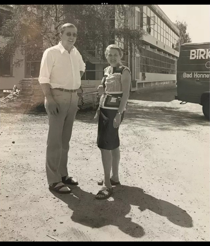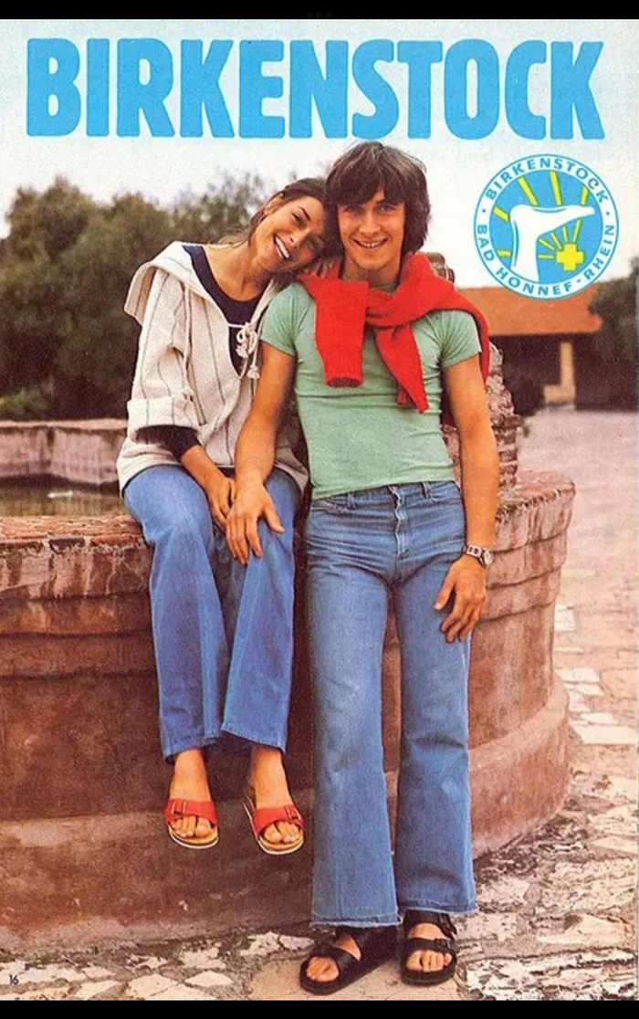 Марка Birkenstock по-прежнему распространялась только в Германии и других частях континентальной Европы, пока в 1966 году в Германию не приехала американская туристка по имени Марго Фрейзер. Марго якобы познакомилась с сандалиями Birkenstock в немецком спа-салоне и обнаружила, что они быстро избавляют ее от хронической боли в ногах, от которой она страдала годами. Вдохновленная этими преимуществами для здоровья, Марго решила импортировать Birkenstock в США, основав в Калифорнии торговую компанию Birkenstock Footprint Sandals, Inc. То есть, как я понимаю, она просто ими торговала в Америке. Кстати, я нигде не нашел, спрашивала ли она у Биркенштоков разрешение на ту торговлю и таки шо они с той торговли имели себе в карман. Надеюсь, что спрашивала и имели. Иначе почему бы эту тетю из-за океана всегда вспоминают в рассказах о честных немецких сапожниках.
