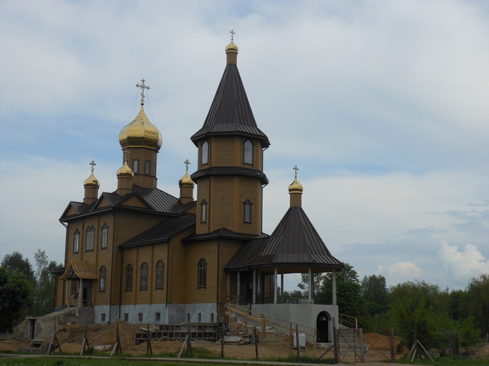 Церковь Троицы Живоначальной находится в западной части Белоруссии, но построена на средства прихожан в 1906 году в стиле русского деревянного зодчества, не свойственного этому региону.