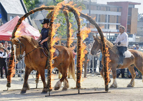 Кроме того, иногда бывают дефиле с участием лошадей. В городке Ландивизио Landivisiau разводят какую то замечательную породу лошадей. И вот иногда они тоже участвуют в празднике