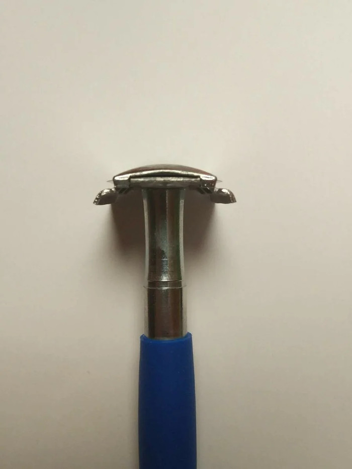 А вот следующие проходы, поперек роста и против роста щетины, были уже не совсем приятные и комфортные, станок нужно было вести максимально от крышки, иначе щетина не сбривалась, а станок просто скоблил, как овощечистка. Присмотревшись, стало сразу все понятно - изгиб у лезвия минимальный, почти под прямым углом, поэтому и не срезало щетину, если бритья от гарды. GAP (потом измерил) 1,3мм, но здесь он никакой роли не играет, так как все равно приходится бритья от крышки.