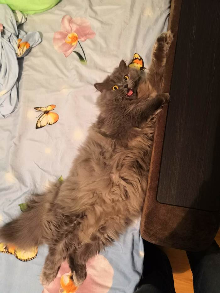 Юська очень обоятельная и любопытная кошь, любит первой подлететь к человеку, изучить его и показать, где лежат все игрушки, на месте ей не сидится от слова совсем. Скучно с ней точно не будет.