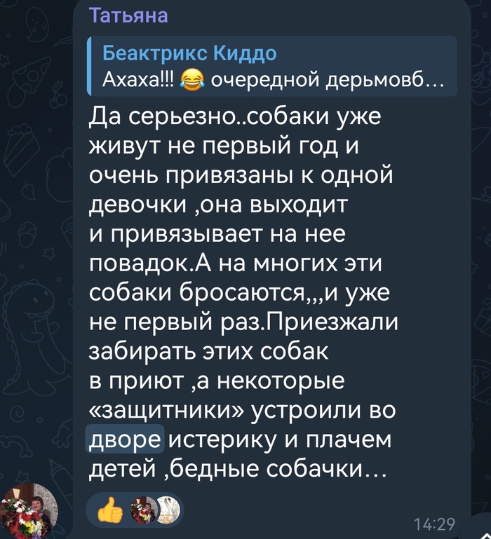 Но на кону жизнь невинных животных! Не они выбирали улицу и помойку, они живые как мы, нельзя допустить их «гуманного умерщвления» (термин прозвучавший на заседании профильного комитета).