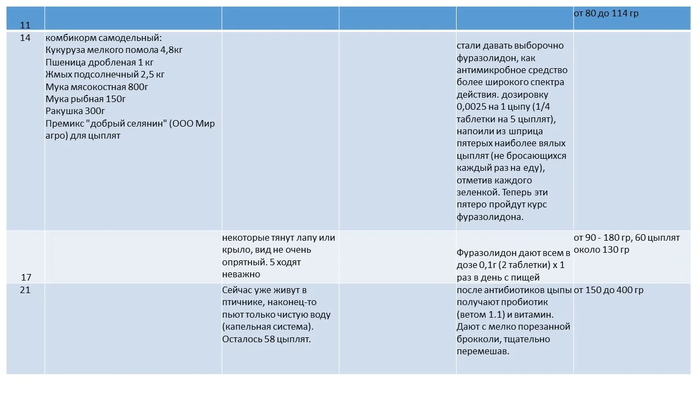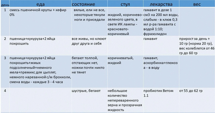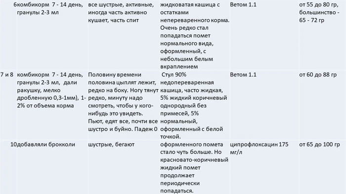 Ниже приведена таблица, как они росли, чем питались, как себя чувствовали