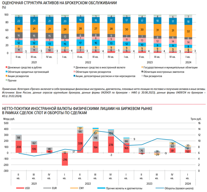 Покупки валюты не привели к росту остатков на брокерских и банковских счетах физлиц. Ибо вся она (валюта) уходила на зарубежные счета. В том числе и для оплаты товаров и услуг.