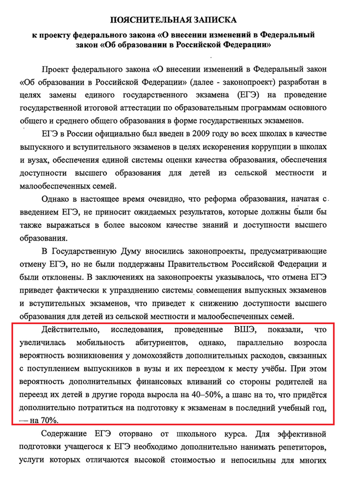 Дорогие друзья, вчера (пост написан в пятницу) в Госдуму залетел законопроект. О внесении изменений в ФЗ «Об образовании в Российской Федерации». Хотят отменить ЕГЭ и вернуть всё взад.