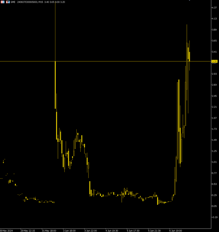 Интересное там происходит на опционах. Вот, к примеру, опцион-кол со страйком 65, который истекает сегодня, за один вчерашний день сделал Х40. Если сегодня цена базового актива (акции) выйдет за 65, то страшно представить, что там за доходности у опциона будут.