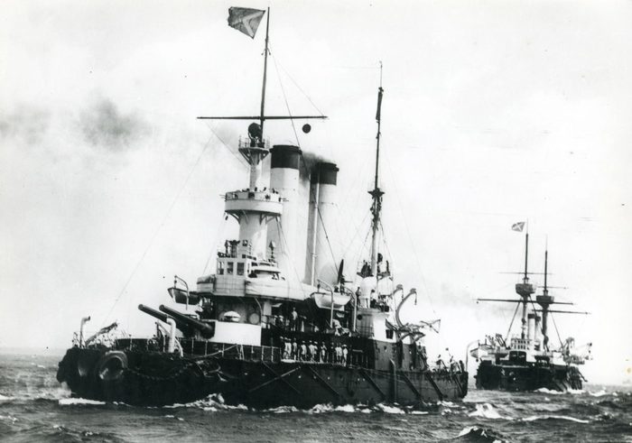 «Адмирал Ушаков» в составе Учебно-артиллерийского отряда, 1902 год. Вторым идёт броненосец «Император Александр II».