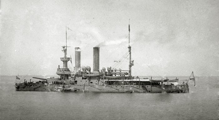 Японский броненосный крейсер «Якумо» в Куре, 1905 год.