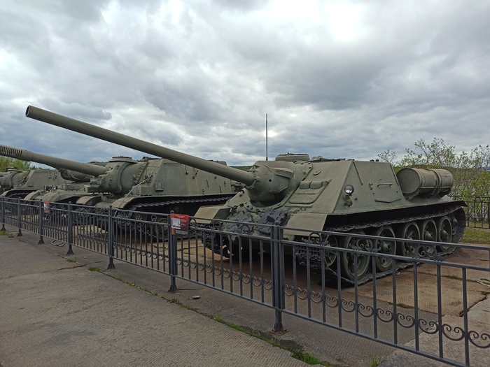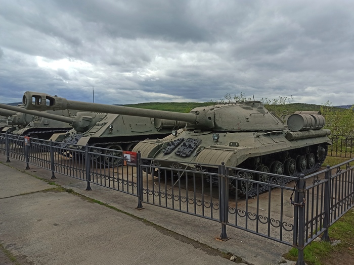 После мы с Ольгой вышли на площадку - стоянку техники, наружу. Она довольно большая и сплошь уставлена техникой. Танки, артиллерия, БТР, БМП... Где-то от 50-х годов начиная, наверное.