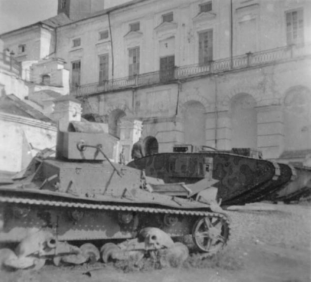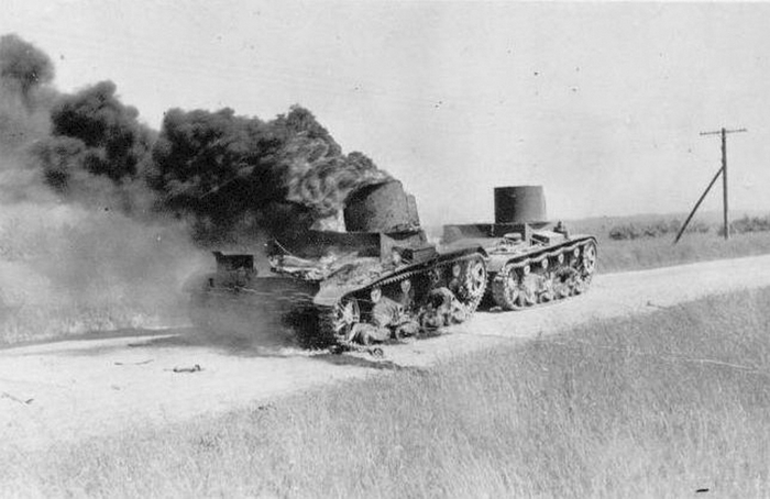 Брошенные ХТ-26. Один из них сожжён. Лето 1941 года.