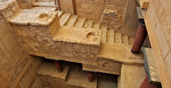 Конечно, сейчас невозможно с уверенностью определить, где и как это произошло впервые. Скорее всего в Кноссе, где был создан самый большой и самый сложный из всех известных ныне архитектурных комплексов такого типа.