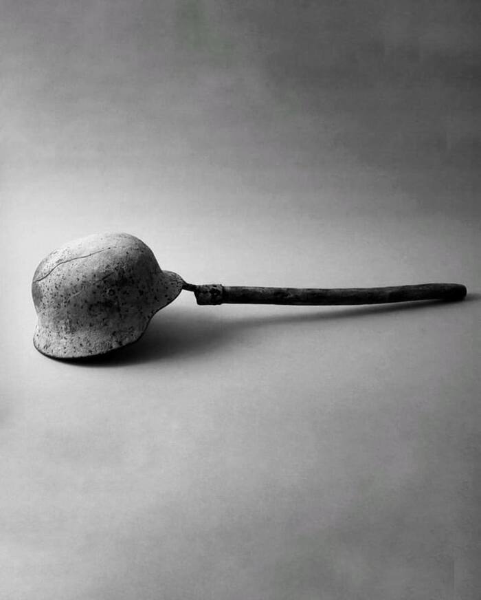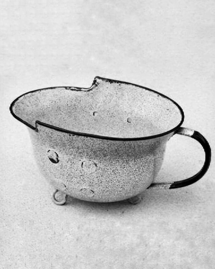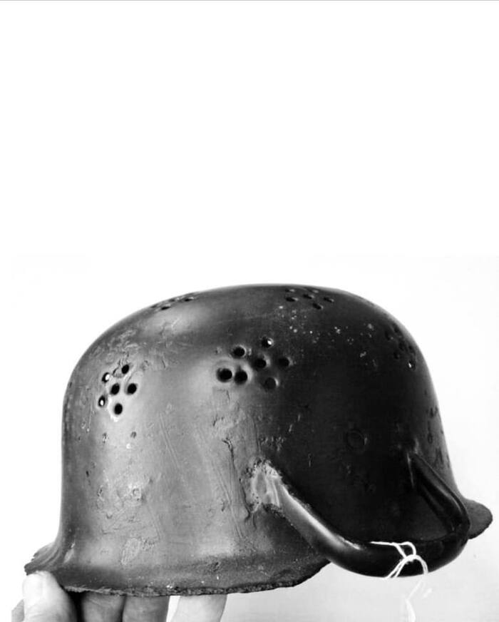 Производство ночных горшков, дуршлагов и черпаков из немецких касок. 1945 год.