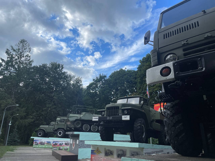 Точка 10. Бывшие казармы Конного полка. Сейчас эту достопримечательность можно краем глаза увидеть через забор и колючую проволоку, потому что в наши дни это территория «21 Научно-исследовательского испытательного института военной автомобильной техники». Фотографировать рядом мне не рекомендовали, а вот технику на постаменте неподалеку фотографировать можно и нужно: