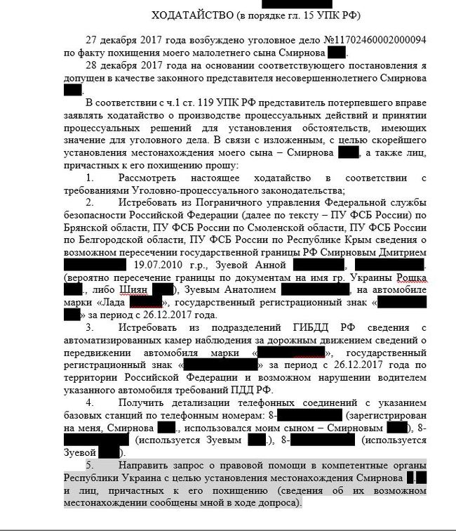 1. Самое важное- возбуждено уголовное дело по факту похищением ребёнка (ч.2 ст. 126 УК РФ)