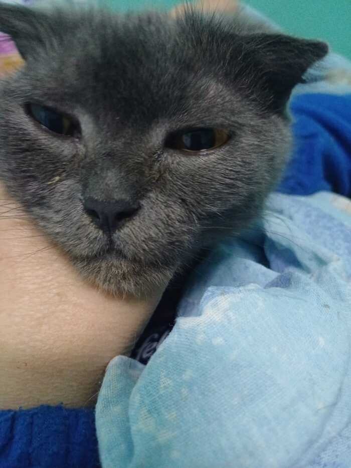 Кошка очень истощена. Нужно откармливать и откариливать....