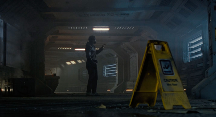 В важнейшем сюжетном повороте герои отключают гравитацию на корабле. Режиссер показывают иконку во весь экран, зритель всё понимает без слов: