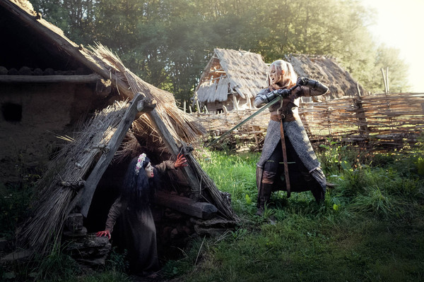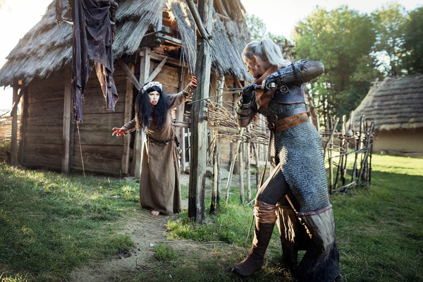 Геральт медленно приближался мягкими, пружинящими шагами, обходя фонтан полукругом со стороны забора, мимо куста голубых роз. Существо, прилепившееся к хребту дельфина, поворачивало вслед за ним миниатюрное личико, на котором читалась невыразимая тоска, полная такого очарования, что оно заставляло его постоянно слышать пение, хотя маленькие бледные губы не шевелились.