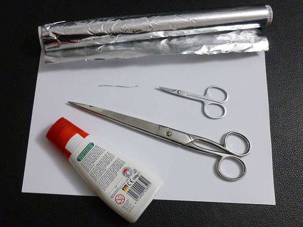 Так же нам пригодится бумага (в идеале фотобумага или картон для принтера), алюминиевая фольга, клей, ножницы.