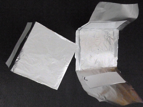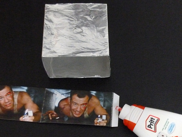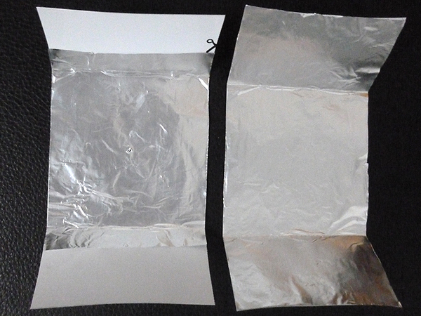 Начинаем покрывать фольгой нашу заготовку, можно немного выходить за края - ничего страшного. Я сделал матовой стороной вверх, так эффект получается лучше.