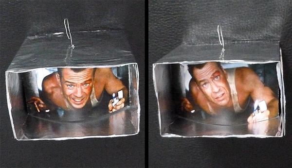 Осталось совсем ничего: продеть нить для подвешивания игрушки и, собственно, самое важное - поместить Джона Макклейна внутрь воздуховода. Он не сильно был рад этому, но после недолгих уговоров, все же согласился.