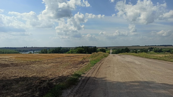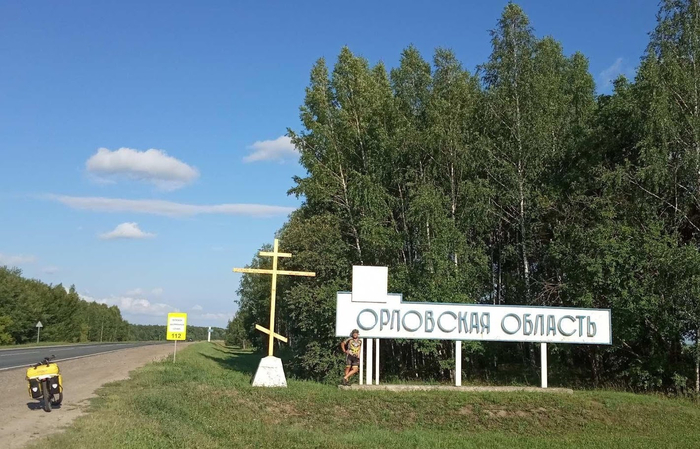 75 день (Орловская область). Сегодня утром мы надёжно укрыты берёзовой посадкой. Попытки солнечных лучей к нам пробиться, лишь оставляют кружевной узор теней на тенте палатки. Практически полностью отсутствуют комары и прочая летающая дрянь. Обычно, эти два фактора - жара и повышенная концентрация кусающей насекомости, сильно ускоряли наши сборы и заставляли эвакуироваться в экстренном порядке. Сегодня можно не спешить. Писать отчёт, готовить завтрак на печке, заняться очередной сменой цепей. Впервые за долгое время, палатка абсолютно сухая и без всякого солнца. Отсутствие крупных водоёмов, влажных лесов, болот и лугов, сказывается, всю влагу впитывают поля с различными посевами, которые теперь доминируют в окружающем пейзаже. Кроме того, после Карелии, мы уже сильно продвинулись на юг. Судя по карте, наш Ульяновск теперь немного севернее, мы находимся примерно на широте Сызрани.