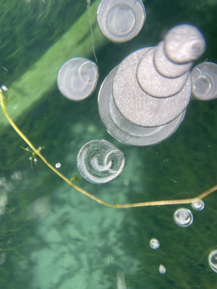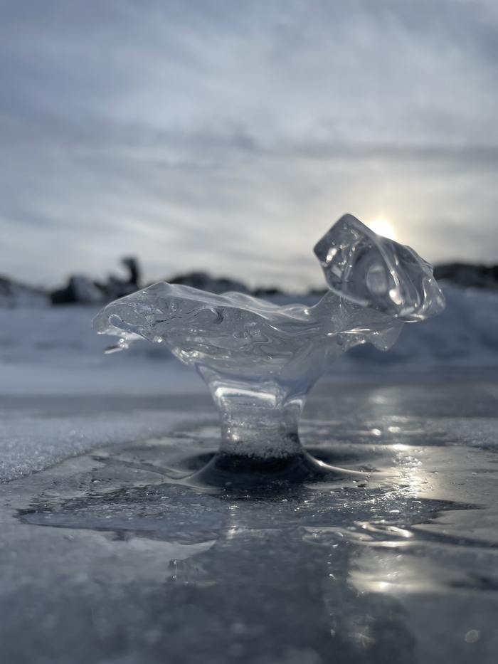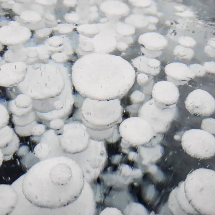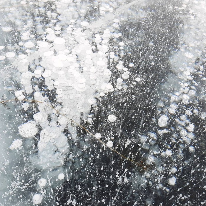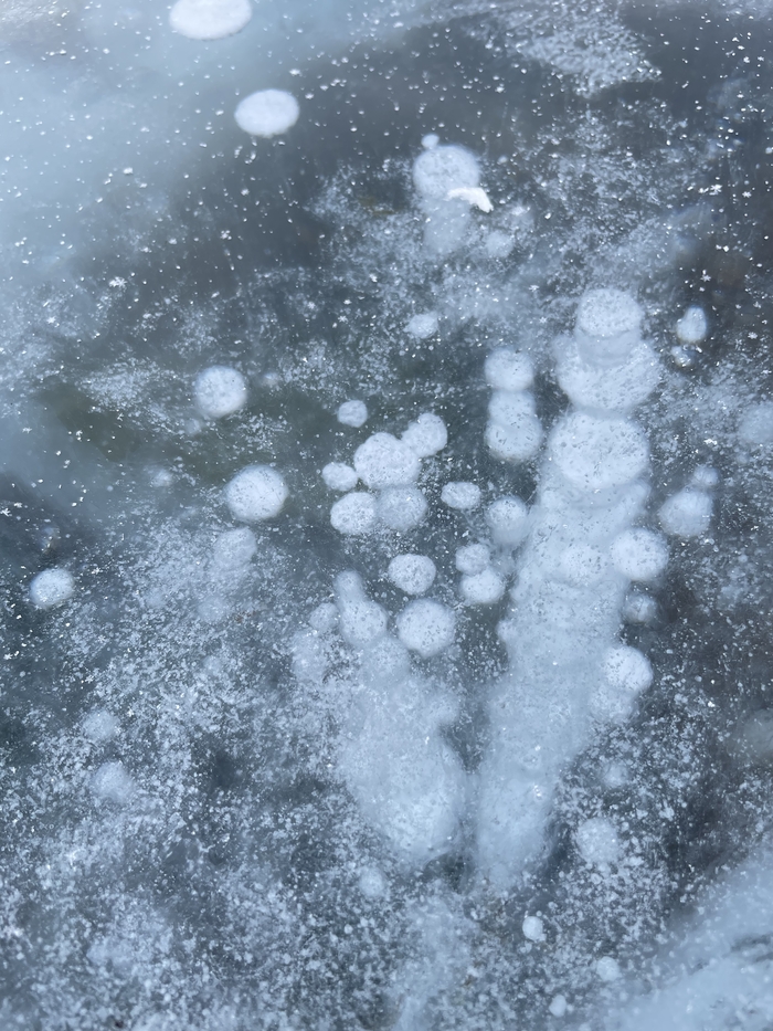 Рядом с берегом снега и льда очень много. Идём в ледоступах и натыкаемся на знаменитейшие байкальские пузырики!