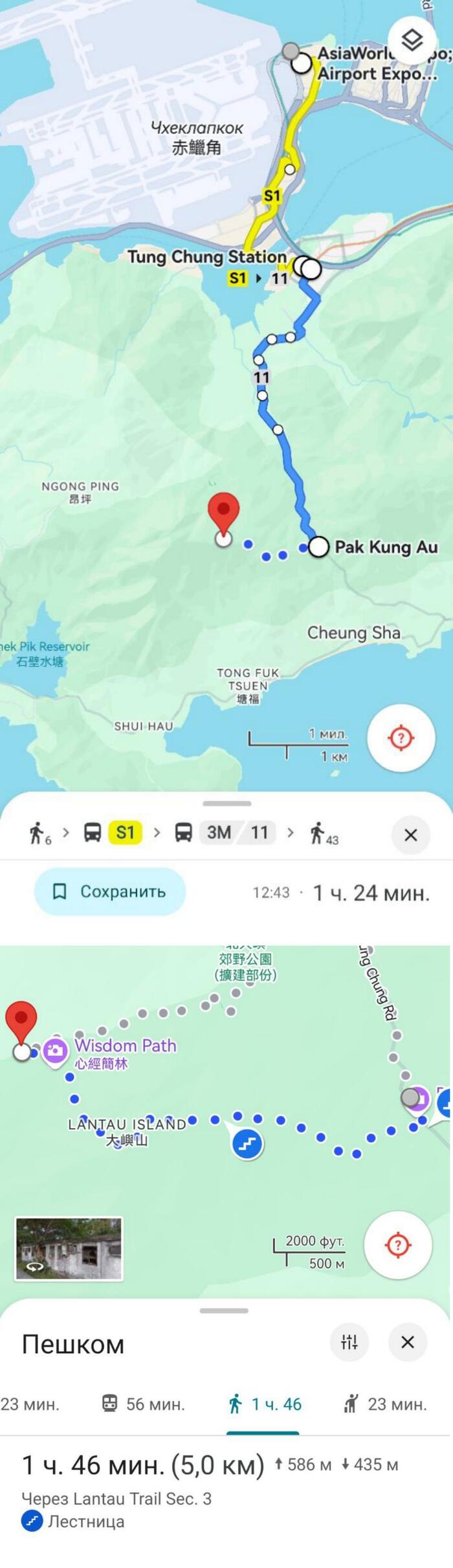 План был крут, из аэропорта двумя автобусами доехать до начала тропы и перемахнуть горный хребет выйдя в точку ngong ping.