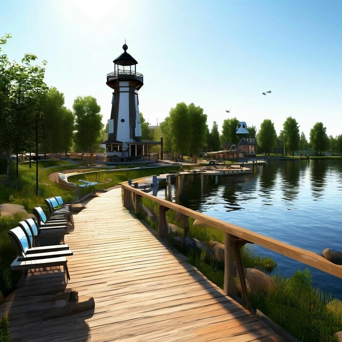 В основе художественного облика этой композиции лежит развитие форм таким образом, чтобы обеспечить архитектурное единство в створе продольных объёмов, ориентированных на расположенный в глубине этого пространства главный объект. В результате, пространство преобладает над элементами, а зритель воспринимает облик целиком.