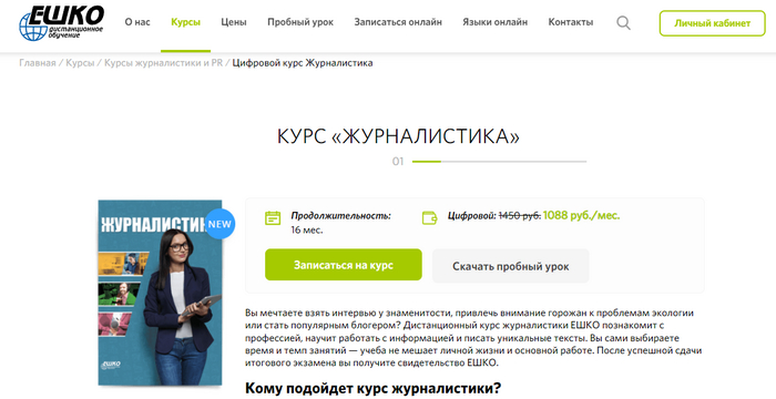 Журналистика от Курсы ЕШКО — дополнительные материалы для уже работающих по специальности.