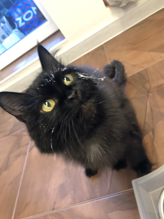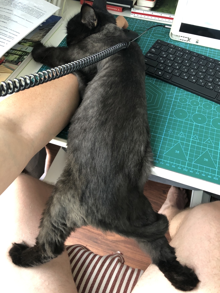 Моя чёрная кисяо, в период своей активной шерстистости, постоянно приносит из туалета говно на шерсти, под хвостом. Так и ходит с этими бусиками, воняет довольная, ложится со мной, на меня забирается, пока не поймаешь. Вот она кстати: