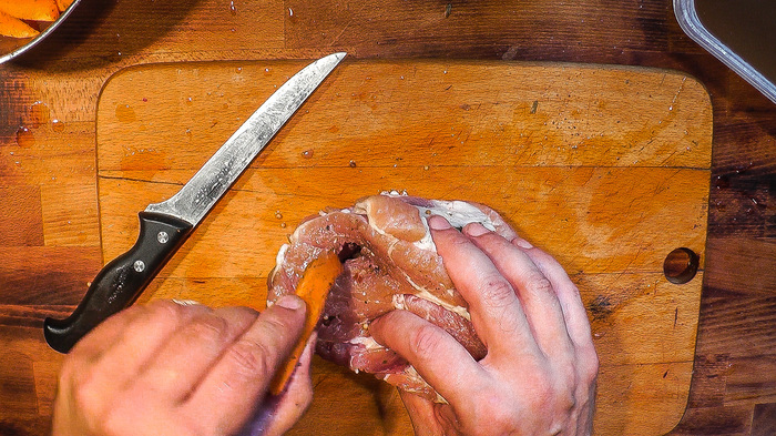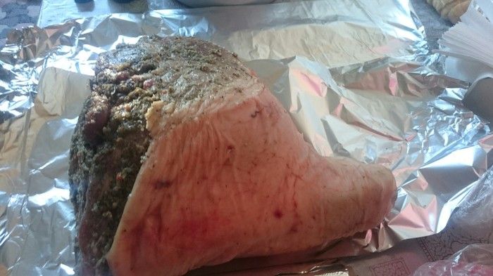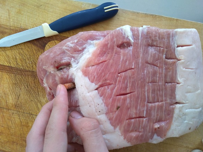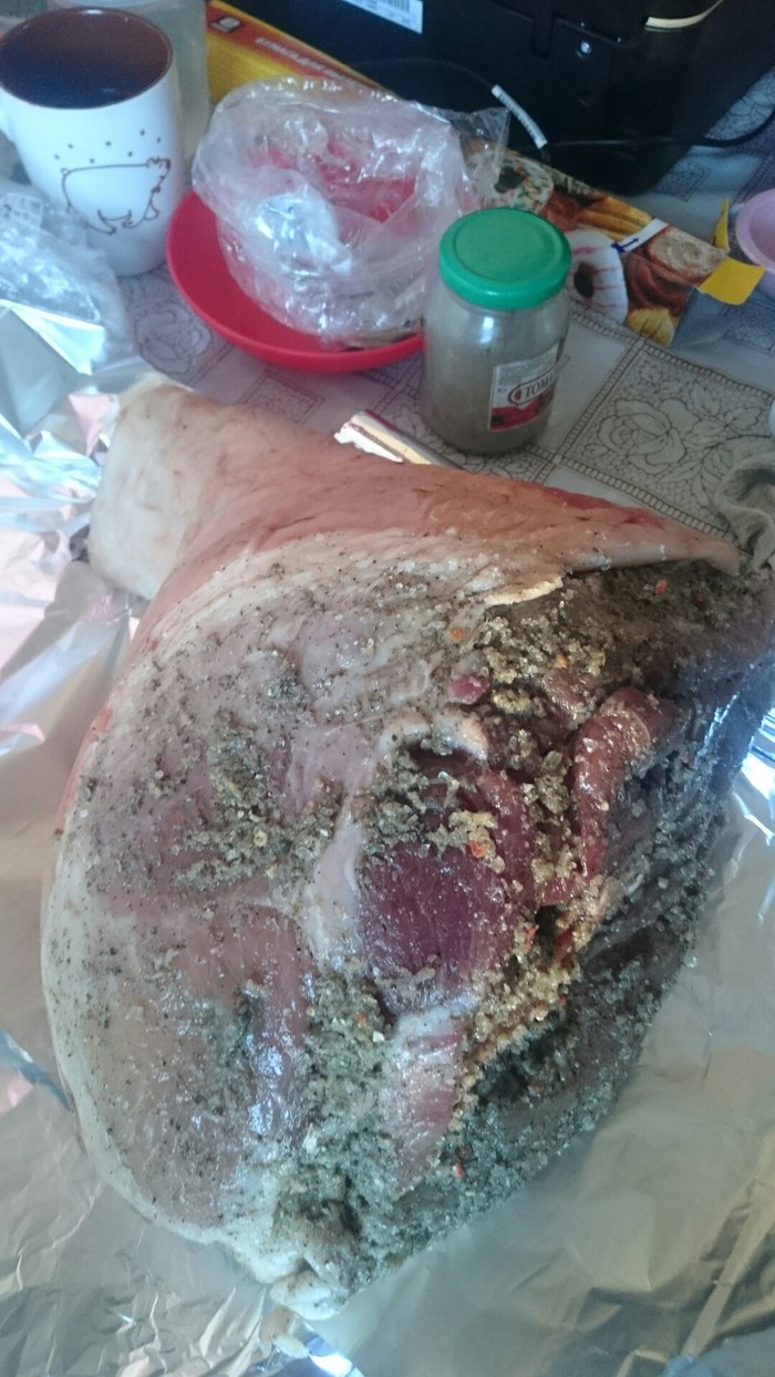 Итак, был взят кусок задней части поросячьей тушки. Если кому интересно, то его вес был кило восемсьот граммов.