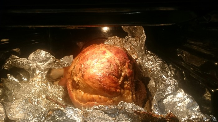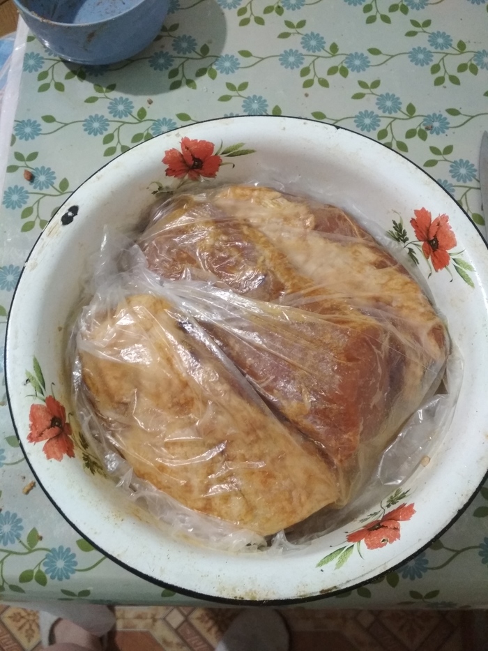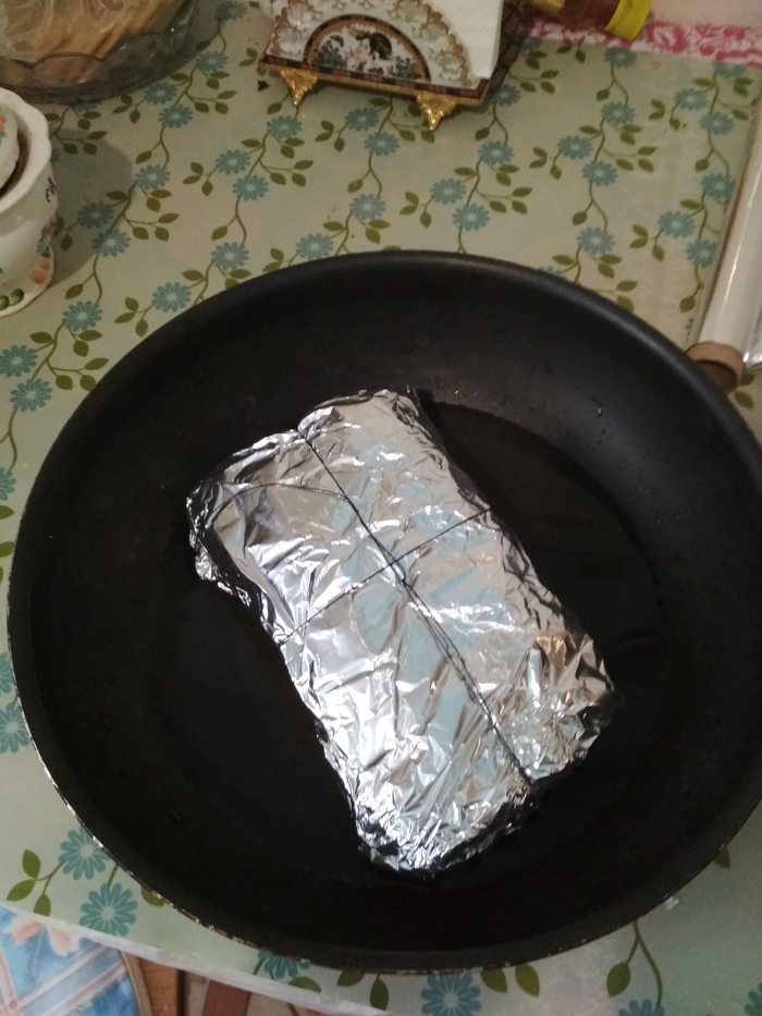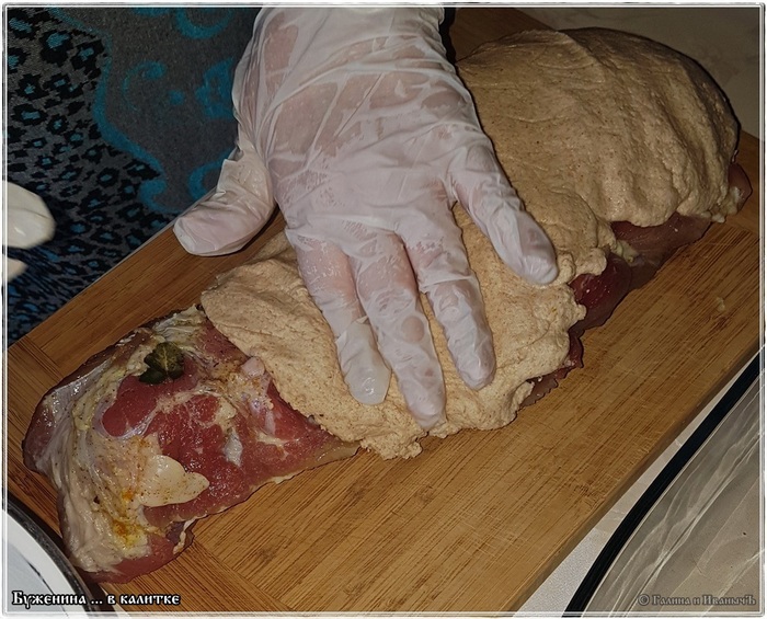 Надо все очень тщательно проверить, уплотнить. Чтобы мясо плотно было обмазано тестом и нигде не было никаких нарушений этой калиткиной оболочки.