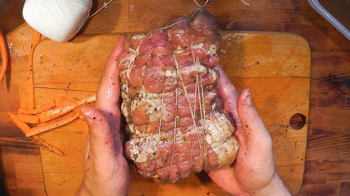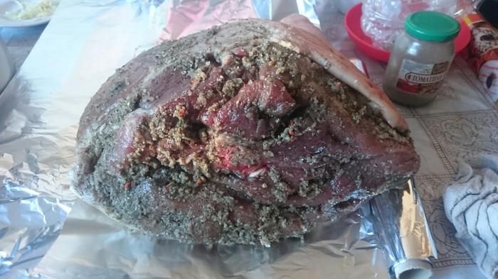Взламываем. Про ароматы промолчу. Тут много будет зависеть от тех специй и приправ, которые вы в мясо добавить, но!..., аромат запеченного мяса в совокупности с ароматом свежевыпеченного ржаного хлеба – это, я вам доложу, коллеги, нечто…!!!
