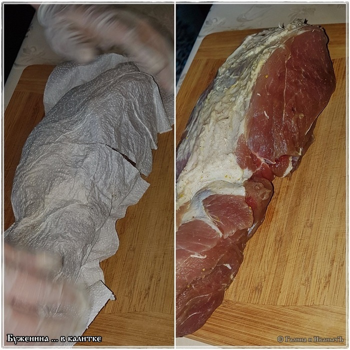 Когда мясо из лотка достанем, то надо его хорошенько обсушить. Бумажные полотенца тут самое лучшее.