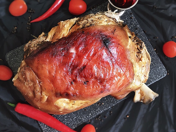 А дальше мясо отправляется в духовку. Температура духовки – сто градусов. Запекать до достижения внутри мяса температуры – семьдесят градусов.