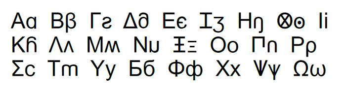 3. Использование классического греческого алфавита с добавочной Бб для записи русского языка