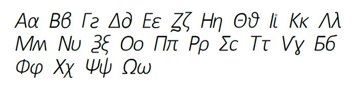 Здесь мною предложен вариант классического греческого алфавита с новым стандартом строчных букв и добавочной болгарской буквой Б.