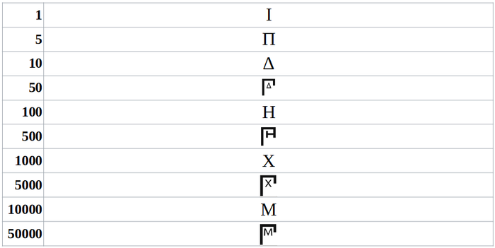 12. Замена Римских цифр на Греческие цифры (Аттическая система)