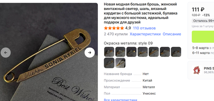 Брошь-булавка "Соня Рикель" (бггг) с Авито