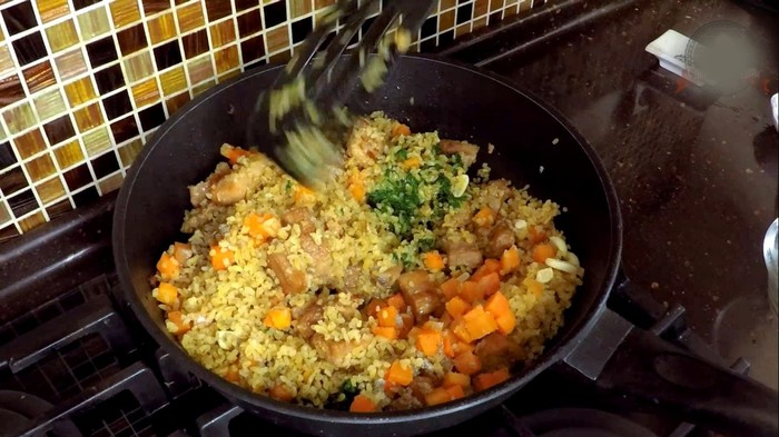 При обжаривании раскрывается весь богатый вкус и аромат крупы — булгур приобретает ореховые нотки и больше подходит к блюдам из мяса. Этот способ чаще используется для приготовления плова.